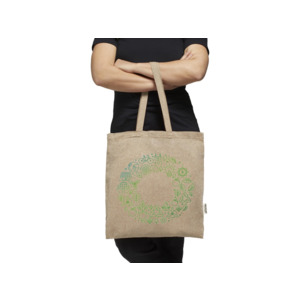 Эко-сумка из смеси переработанного хлопка и полиэстера плотностью 150 г/м². Эта сумка легко складывается, чтобы поместиться в небольшом пространстве, и является идеальным компаньоном для различных занятий, таких как покупка продуктов, однодневные поездки или поделки. Вторичный хлопок изготавливается из отходов, предназначенных для потребления, которые производятся текстильными фабриками в процессе резки. Подобные цвета смешиваются вместе, поэтому дополнительная окраска не требуется. Из-за особенностей переработанного хлопка возможны незначительные отклонения в цвете. Благодаря этому изделие выглядит более аутентичным. Каждая сумка также поставляется с индикатором Aware™. Эта инновационная функция позволяет пользователям отслеживать происхождение и путь своего товара с помощью QR-кода, повышая прозрачность цепочки поставок и способствуя более прочной связи между продуктом и процессом его производства. Прочность до 5 кг. Длина ручки: 31 см. 80% Recycled cotton, 20% Переработанный Полиэстер.