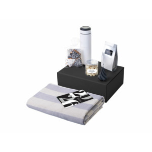 - Материал товара - плед - 100% хлопок, мешок - нетканый материал (спанбонд), термос - нержавеющая cталь с покрытием soft-touch, открытка - бумага