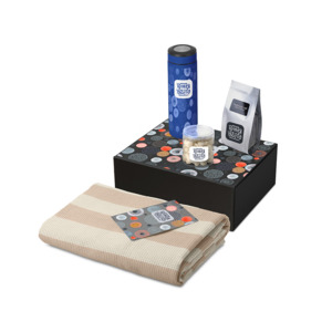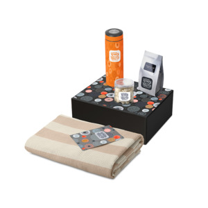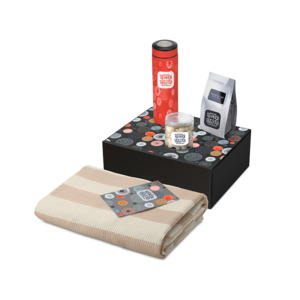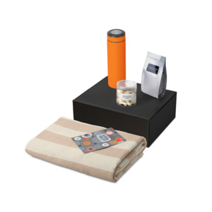 - Материал товара - плед - 100% хлопок, термос - нержавеющая сталь с покрытием софт-тач, чай - пластик, мешок - нетканый материал (спанбонд), коробка - картон
