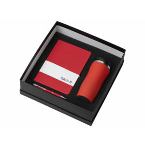 Подарочный набор с блокнотом С1, металлической ручкой и термокружкой, красный