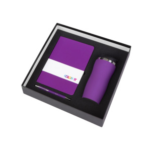 Подарочный набор с блокнотом С2, металлической ручкой и термокружкой, фиолетовый