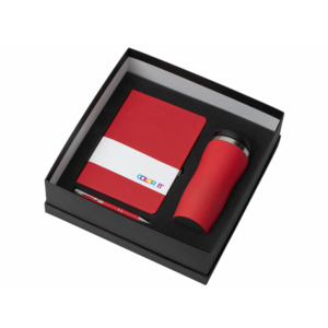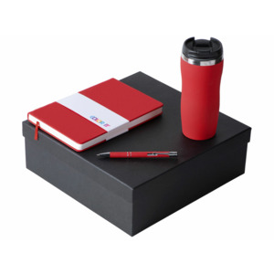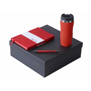 Подарочный набор с блокнотом С2, металлической ручкой и термокружкой, красный