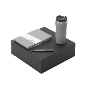 - Материал товара - блокнот - искусственная кожа с покрытием soft-touch, ручка - алюминий с покрытием soft-touch, термокружка - нержавеющая cталь с покрытием soft-touch, коробка - картон