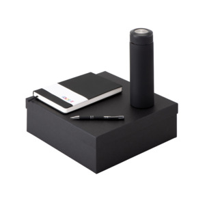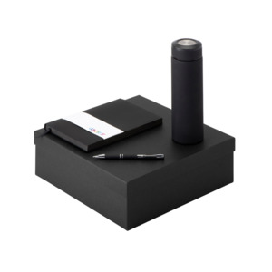 Подарочный набор с блокнотом С3, металлической ручкой и термосом, черный
