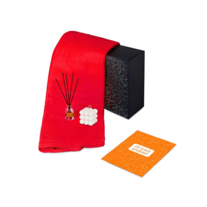 Подарочный набор с пледом, свечой и диффузором, красный