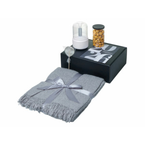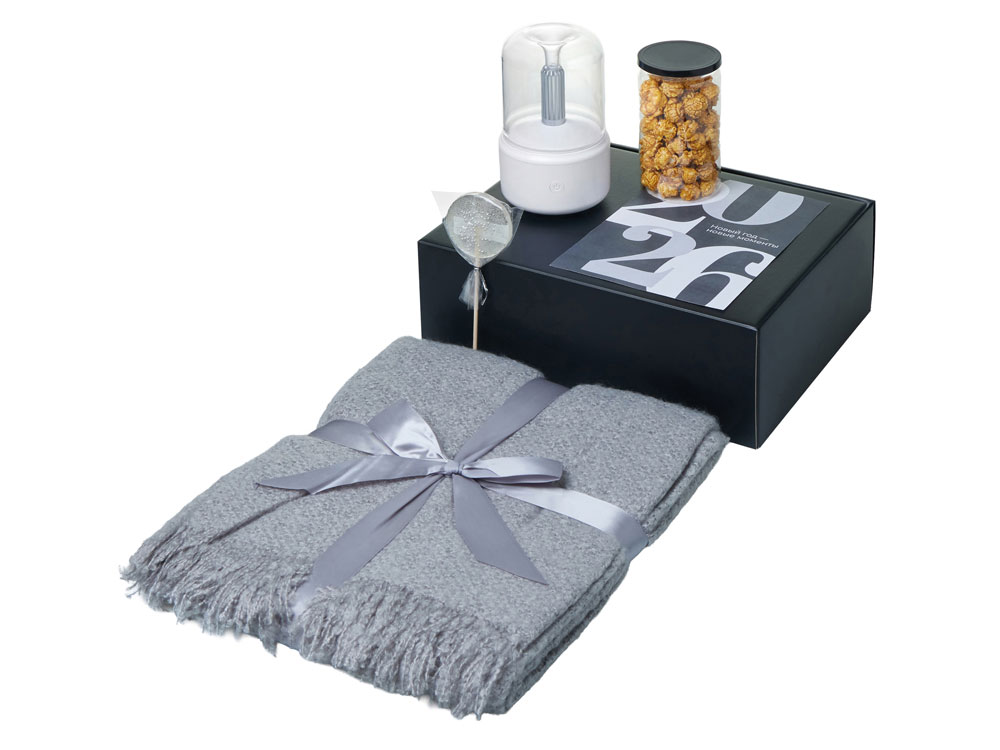 Подарочный набор с пледом, увлажнителем и попкорном, серый