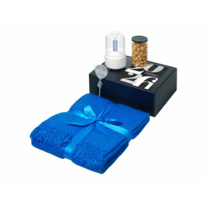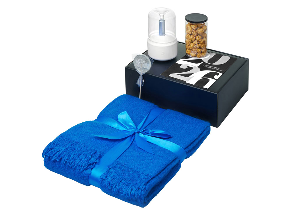 Подарочный набор с пледом, увлажнителем и попкорном, синий