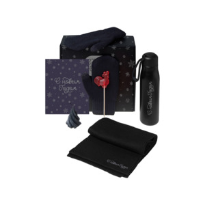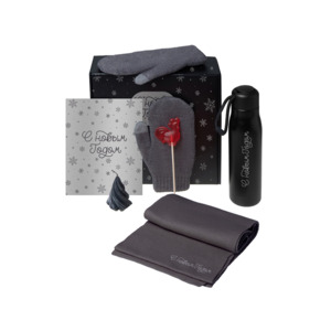 - Материал товара - варежки - 100% акрил; шарф - 100% акрил; термос - нержавеющая сталь; открытка - бумага; мешок - нетканый материал