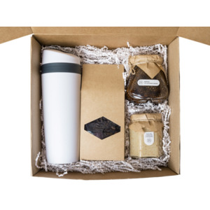 - Материал товара - коробка - картон, банка - стекло, термокружка - полипропилен