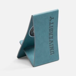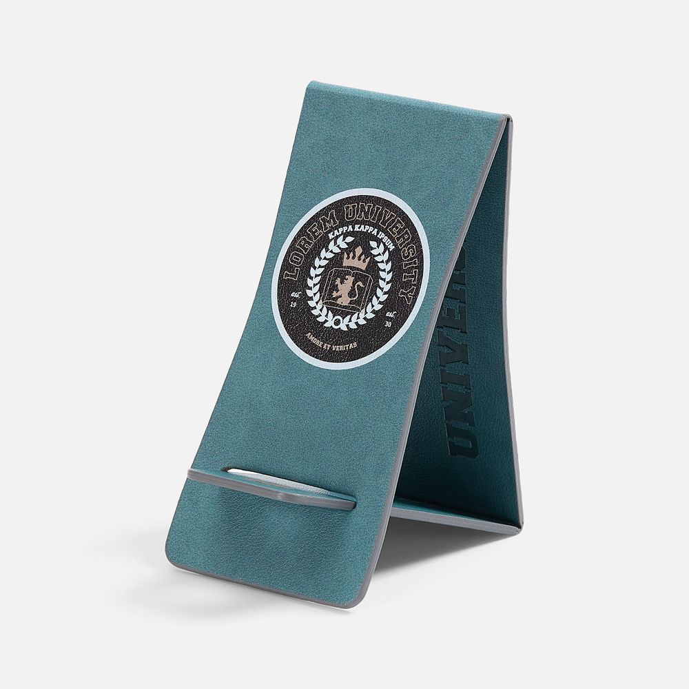 Складная подставка для телефона с вырубкой под шнур зарядного устройства. Выполнена из материала Petrus.