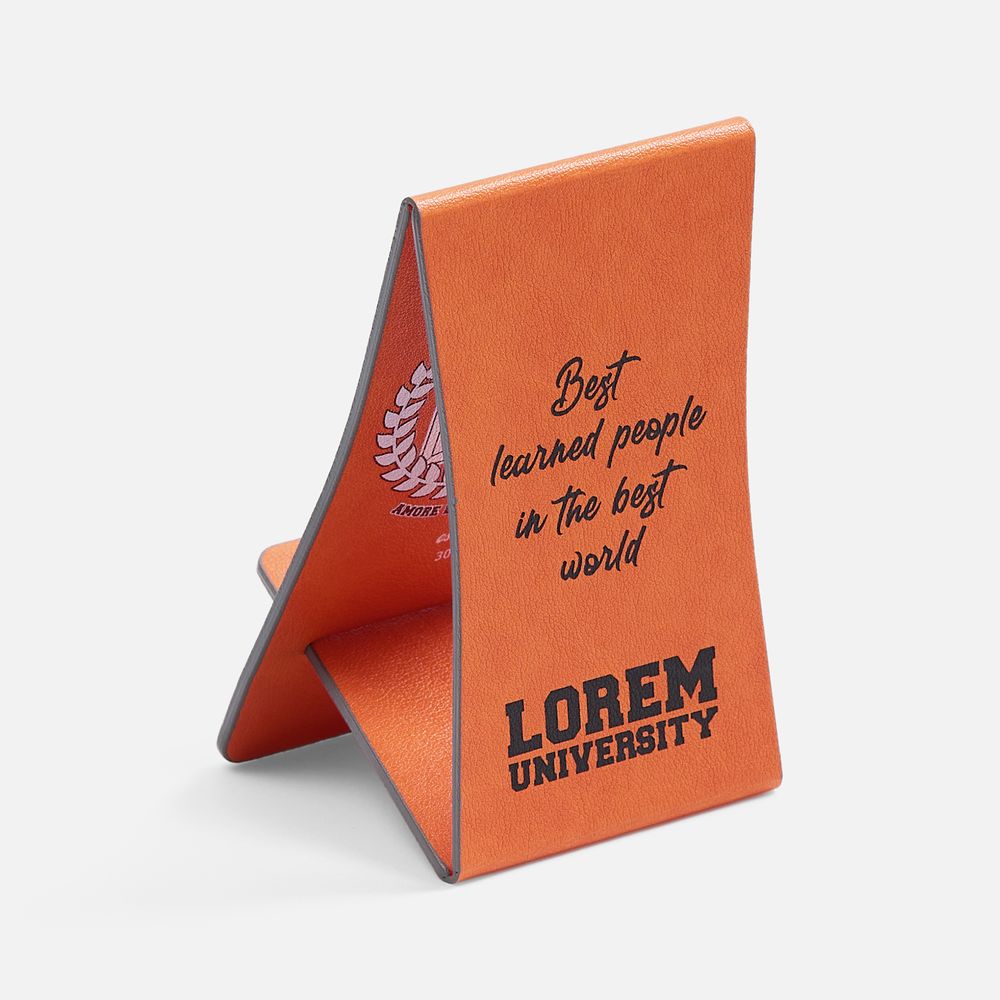 Складная подставка для телефона с вырубкой под шнур зарядного устройства. Выполнена из материала Petrus.