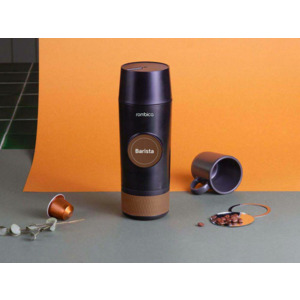 Barista – это компактная кофемашина, она с лёгкостью помещается в сумку, работает без розетки от встроенного аккумулятора. Все что вам потребуется для приготовления ароматного и свежего эспрессо – это кипяток и кофе (молотый или в капсулах).С помощью этой кофемашины вы сможете приготовить кофе в любом месте – дома, на работе, в походе или на прогулке. Для приготовления кофе вам не потребуется искать кружку, емкость для свежеприготовленного кофе находится прямо под крышкой кофемашины. Термокольцо на крышке позволит удобно и безопасно наслаждаться свежим напитком. Портативная кофемашина создает давление до 15 бар для приготовления настоящего эспрессо. Одного запуска хватает на 2 чашки эспрессо по 30 мл, минимальное количество воды для запуска 50 мл. Для приготовления горячего напитка необходим кипяток 85°С – вы можете использовать кипяченую воду из термоса или чайника. Рекомендуется мыть под обычной теплой водой без добавления моющих средств. Характеристики: Встроенный аккумулятор: 2600 мАч / 3.7 В Простая зарядка от USB Мощность: 3.5 Вт Время зарядки: ~3 часа Объем резервуара для воды: 0.08 л - Управляется одной кнопкой - До 50 чашек на одной зарядке - Одного запуска хватает на 2 чашки эспрессо по 30 мл - Кофемашина подходит для молотого кофе и для капсул Nespresso - Для приготовления нужен кипяток 85°С