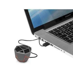 Беспроводная портативная колонка “Geo” с функцией расширенных басов изготовлена в дизайнерском стиле low-poly. Форма революционного Bluetooth-динамика напоминает мистический кристалл, а подсветка различных цветов (белая, синяя, красная, зеленая, оранжевая) добавляет таинственности. При этом ее яркость зависит от воспроизводимой музыки. Подсветку можно легко поменять, сделав три быстрых нажатия на кнопку включения и произойдет настоящая магия у вас в руках. Динамик соединяется с любыми устройствами, поддерживающими передачу данных по Bluetooth, поэтому подходит для большинства смартфонов и планшетов, например, iPhone, iPad. Версия Bluetooth - 4.2. Колонка имеет литий-полимерную батарею (450 mAh), которая эффективно сохраняет заряд, а также безопасна в использовании. Благодаря ей беспроводной динамик “Geo” может работать до 4 часов без подзарядки, а на среднем уровне воспроизведения звука до 7 часов. Динамик настолько компактный, что помещается на ладони и весит всего 97 г. Он также имеет покрытие софт-тач, поэтому, если вы возьмете колонку в руки, то не захотите ее выпускать. На корпус колонки можно нанести гравировку, которая будет вскрываться при помощи подсветки. Идеальный презент не только для меломанов, но также для людей, которые любят инновационные “умные” гаджеты. Беспроводная колонка «Geo» отлично дополняет серию электронных подарков от Xoopar - мышь “Geo Mouse” и портативное зарядное устройство “Geo Slim”.