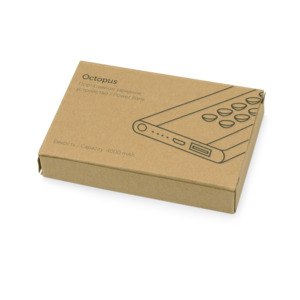 Портативное зарядное устройство (power bank) Octopus, 4000 mAh в тонком металлическом корпусе. На одной стороне расположены силиконовые присоски, благодаря которым смартфон или планшет станет единым целым с зарядным устройством. На другой имеется большая поверхность под нанесение. Внешний аккумулятор снабжен универсальным компактным кабелем 2-в-1 с разъемами usb-micro и Lightning. Универсальный кабель крепится в углубление на корпусе повербанка. Сила тока выходного разъема составляет 1.5А, следовательно ваши гаджеты будут заряжаться быстрее. На корпусе внешнего аккумулятора имеется индикатор заряда. Литий-полимерный аккумулятор эффективно сохраняет заряд, а также безопасен в использовании. Octopus создан специально, чтобы быть удобным – его приятно держать в руках, он может быстро зарядить ваше устройство и позволит им пользоваться в привычном режиме.