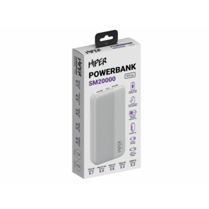 Портативный внешний аккумулятор HIPER SM20000 емкостью 20000 мАч (74Втч) оснащён входом USB-C для зарядки, Micro-USB входом для зарядки, 2xUSB-A выходами, максимальный выходной ток 2,1А, максимальная мощность 12 Вт.