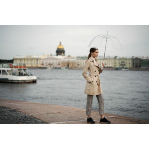 Прозрачный зонт-трость Clear — это стильный и практичный аксессуар, который защищает от дождя, не скрывая окружающий вид.