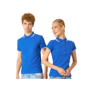 Рубашка-поло Erie с окантовкой. Воротник и манжеты резинка 1х1. Мужская модель с двумя пуговицами, женская - 4 пуговицы в тон изделия. Обшивка внутри воротника. Женская модель с разрезами по бокам. Женская модель приталена. Пике, 100% чесаный хлопок. Плотность 180 г/м2.