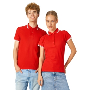 Рубашка-поло Erie с окантовкой. Воротник и манжеты резинка 1х1. Мужская модель с двумя пуговицами, женская - 4 пуговицы в тон изделия. Обшивка внутри воротника. Женская модель с разрезами по бокам. Женская модель приталена. Пике, 100% чесаный хлопок. Плотность 180 г/м2.