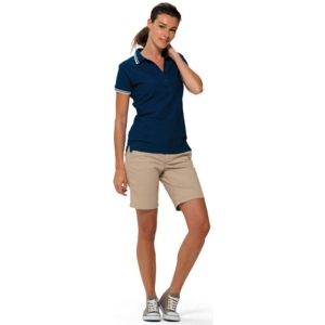 Рубашка-поло Erie с окантовкой. Воротник и манжеты резинка 1х1. Мужская модель с двумя пуговицами, женская - 4 пуговицы в тон изделия. Обшивка внутри воротника. Женская модель с разрезами по бокам. Женская модель приталена. Пике, 100% чесаный хлопок. Плотность 180 г/м2.