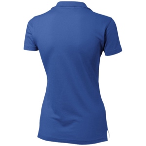 Женская рубашка-поло First. Воротник 1х1. Обшивка внутри воротника. Мужская и детская модели с 2 пуговицами, женская - с 4 пуговицами. Пуговицы с гравировкой в тон. Пике, 100% хлопок. 160 г/м2.