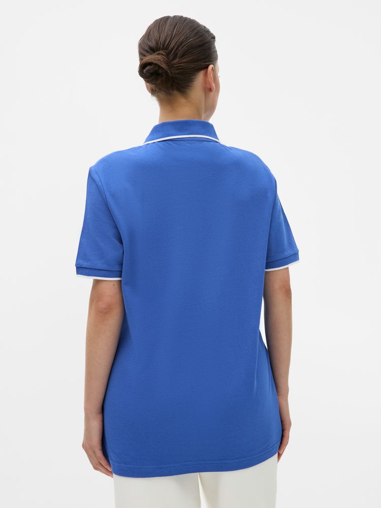 Рубашка поло средней плотности прямого кроя с контрастными деталями. Подойдет как мужчинам, так и женщинам.