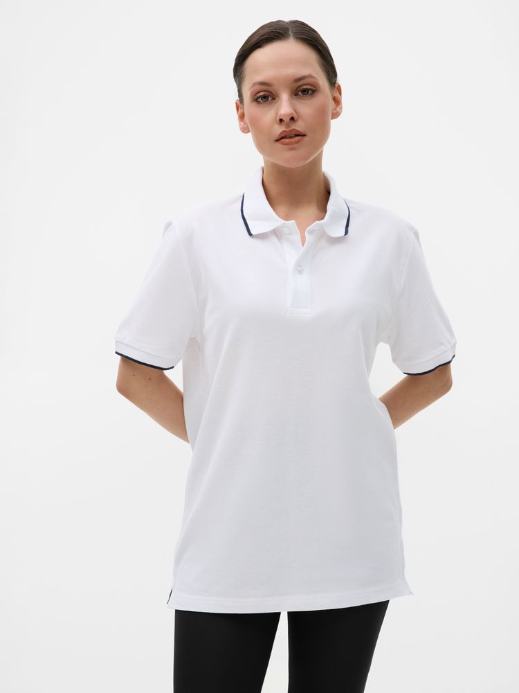 Рубашка поло унисекс Palermo, белая с темно-синим