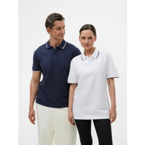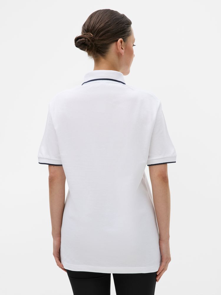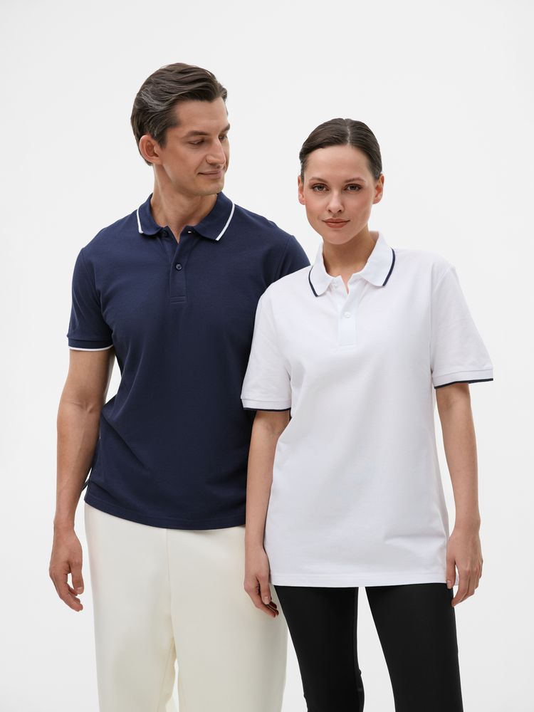 Рубашка поло средней плотности прямого кроя с контрастными деталями. Подойдет как мужчинам, так и женщинам.