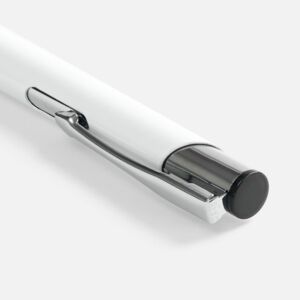 Яркая шариковая ручка с глянцевым цветным корпусом и хромированными деталями.