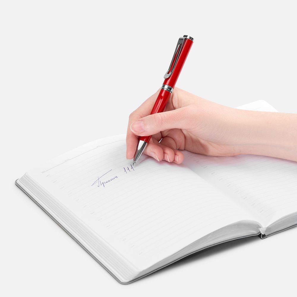 Шариковая ручка эргономичной формы в лакированном корпусе.