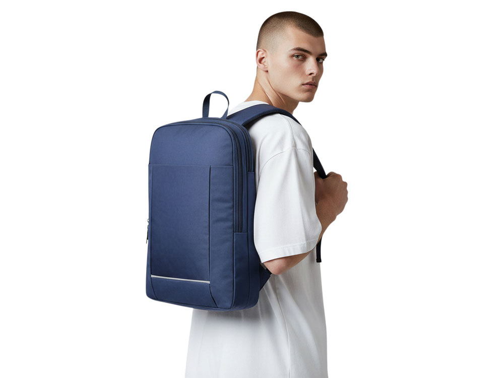 Современный ультратонкий рюкзак с двумя отделениями на молниях и уплотненными стенками. Вместительный наружный карман на молнии. Светоотражающая полоса спереди для дополнительной защиты в темное время суток. Сетчатая спинка. Лямки регулируются по длине.