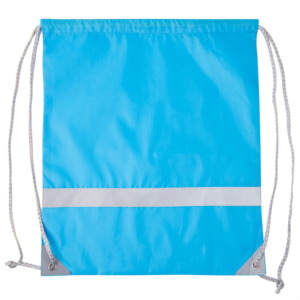 Рюкзак-мешок RAY из полиэстера 210Dсо светоотражающей полосой спереди,  светоотражающими уголками,усиленными металлическими люверсамиЛегко и просто затягивается по верхней части серыми шнурами.