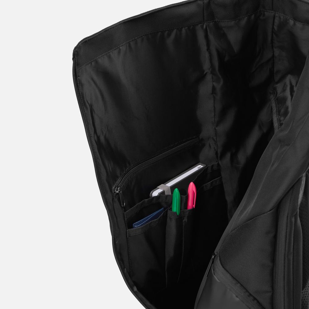 Основное вместительное отделение с боковой молнией обеспечивает легкий и удобный доступ к содержимому, а внутренняя панель‑органайзер позволяет аккуратно разместить мелкие предметы и поддерживать порядок внутри рюкзака.