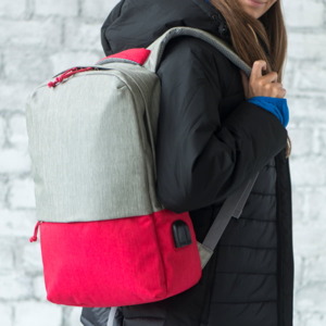 Beam - яркий, практичный и комфортный рюкзак на каждый день. Выбери свой цвет! Основной цвет: близкий к Pantone 421 C, нижняя часть: цвет, близкий к Pantone 179 C · Основная ткань: 100% полиамид, подкладка: 100% полиэстер · Объём: 13 литров · Вмещает ноутбук 15,6" Описание: · Прочный и водоотталкивающий материал · Основной отдел на молнии с двумя бегунками и планкой, защищающей от попадания влаги внутрь · Наружный удобный карман -органайзер на молнии · Внутри укрепленный отдел для ноутбука с защитной тесьмой на липучке · USB разъем для подзарядки вашего устройства (внутри рюкзака в специальном кармане на молнии расположены кабель для соединения с power bank и провод с разъемом мини-джек 3,5 мм для наушников) · Эргономичные лямки и ручка рюкзака · Лямки прошиты дополнительными стропами в быстро изнашиваемых местах, которые можно отрегулировать по длине и зафиксировать пластиковыми крепежами · Упаковка: прозрачный пакет