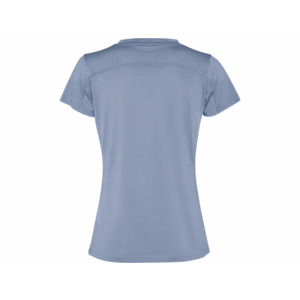 Женская технологическая футболка с короткими рукавами. Легкая ткань из переработанного полиэстера. · Воротник с перекрещенными деталями. · Кокетка сзади и рукава из дышащей ткани. · Направленные вперед и наклонные швы по бокам и плечам. · Закругленный низ. · Комбинация дышащих и эластичных тканей.