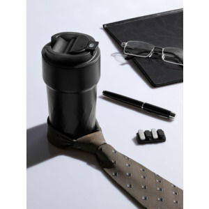 Смарт-термостакан в металлическом корпусе с легким рельефом.