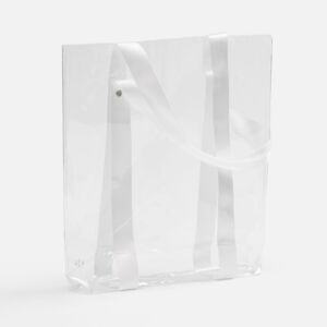 Прозрачные сумки никогда не выйдут из моды. А цветные ручки легко впишутся в брендбук и точно передадут настроение, которое хотелось бы транслировать.