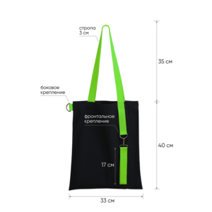 Шоппер Superbag black с ремувкой 4sb (чёрный с салатовым)