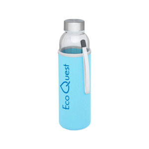 Стеклянная бутылка с одинарными стенками и съемной крышкой. На крышке есть ремешок для легкой переноски, кроме того имеется чехол из неопрена. Рекомендуется использовать для холодных напитков. Не замораживать, не разогревать в микроволновой печи. Объем 500 мл. Уложена в подарочную коробку.