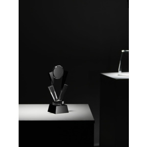 Стела изготовлена из стекла К9, в основе которого лежит оптическое боросиликатное стекло. Эту марку стекла отличает низкий процент посторонних включений, высокий показатель преломления и высокая прозрачность — идеальные качества для изготовления наград премиального уровня.