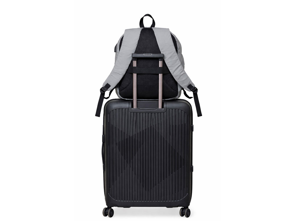 Легкий и вместительный рюкзак идеален для поездок и обеспечит дополнительную безопасность в темное время суток. Благодаря специальной конструкции в местах крепления молний и непромокаемости ткани риск намочить содержимое рюкзака сведен к минимуму. - карман для ноутбука внутри - потайной карман на спинке - боковые наружные карманы, один из которых эластичный на молнии для громоздких предметов - USB выход - дышащая спинка - ремень для крепления к чемодану - регулирующиеся по длине лямки