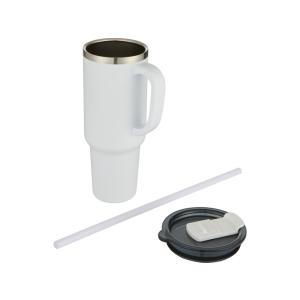 Sydney медная кружка с двойными стенками, сертифицированная согласно RCS, с вакуумной изоляцией и соломинкой, 1200 мл - Белый