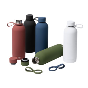 Термобутылка из переработанной нержавеющей стали 304. Мягкая прорезиненная поверхность на корпусе. Удобная силиконовая ручка для переноски. Оснащена противокапельной системой благодаря силиконовому кольцу, встроенному во внутреннюю часть крышки. Крышка и ручка соответствуют цвету корпуса. Объем: 500 мл. - Переработанная нержавеющая сталь 304 - Защита от капель - Нельзя мыть в посудомоечной машине - Поставляется в эко коробке