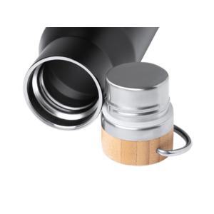 Термобутылка из нержавеющей стали 304 с двойной стенкой и бамбуковой крышкой. Объем: 550 мл. Упакована в экологичную коробку.
