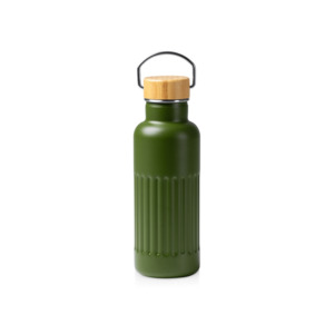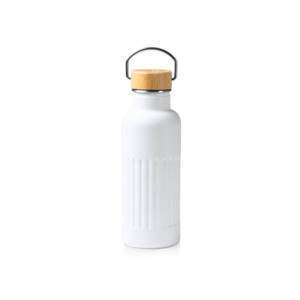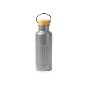 Термобутылка из переработанной нержавеющей стали 304 с двойными стенками и бамбуковой крышкой. Объём: 500 мл. Упакована в экологичную коробку.