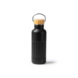 Термобутылка «Нобук» из переработанной нержавеющей стали, с бамбуковой крышкой, черный