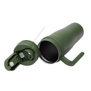 Большая термокружка объемом 900 мл с двойными стенками. Изготовлена из переработанной нержавеющей стали марки 304. Конструкция: Удобная ручка + отверстие для трубочки (трубочка в комплекте). Уход: Только ручная мойка (не подходит для посудомоечной машины). Предупреждение: Не использовать в микроволновой печи. Упаковка: Стильная экологичная дизайнерская коробка.