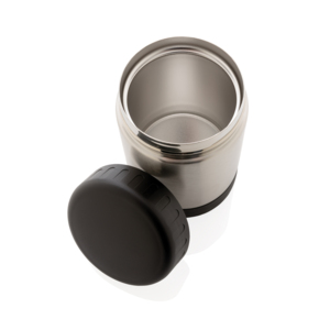 Герметичный вакуумный контейнер для еды сохранит температуру горячих блюд до 5 часов, холодных – до 15 часов. Внутренняя стенка выполнена из нержавеющей стали марки 304, внешняя – из нержавеющей стали марки 201. Объем: 300 мл.