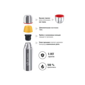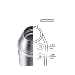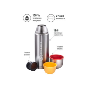 Классический термос Relaxika с двумя чашками и высокими показателями удержания температуры напитка для походов, путешествий, спорта и ежедневного использования. Прочные двойные стенки из высококачественной нержавеющей стали 18/8 с вакуумной изоляцией гарантируют, что ваш напиток останется холодным в течение 38 часов и горячим до 32 часов. Этот материал не только прочен, но и гигиеничен, не выделяет никаких вредных для здоровья веществ. Ваши напитки сохраняет естественный вкус и не приобретут посторонний запах. Напиток остается холодным до 38 часов и горячим до 32 часов 2 чашки. Узкое горлышко позволяет удерживать температуру максимально долго. Крышку термоса можно использовать как чашку. BPA Free. В пластмассах, используемых для производства термосов, отсутствует Бисфенол А – BPA признанный в мире вредным для здоровья человека. Надежная закручивающаяся пробка с силиконовым кольцом защищает от протекания и помогает удерживать температура. Высококачественная нержавеющая сталь 18/8.