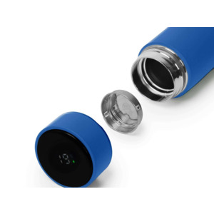 Термос из нержавеющей стали, покрытый цветным soft touch, с крышкой, в которой встроен термометр и LED дисплей, показывающий температуру внутри термоса. Объем: 500 мл. Упаковка: каждый термос в крафт коробке.