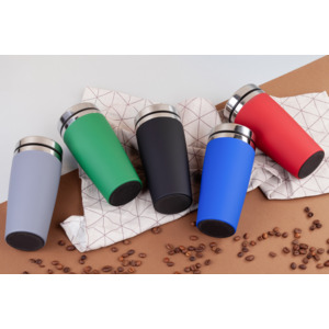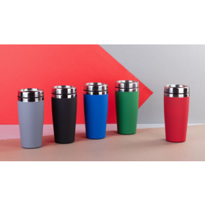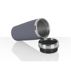 Внешняя стенка термостакана изготовлена из нержавеющей стали с уникальным прорезиненным напылением soft-touch, а внутренняя стенка выполнена из высококачественной пищевой, нержавеющей стали. Корпус изделия персонализируется по окружности встык. У термостакана отвинчивающаяся крышка.